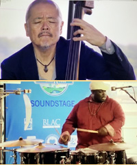 We were both looking forward to the performance by the Kenny Barron Trio as one of the highlights of the Festival and we were in no way disappointed. In tandem with bassist Kiyoshi Kitagawa and drummer Jonathan Blake, the pianist offered a beautifully structured set of music. Although distanced, the Absopure Soundstage provided a view of the river, with its moving boats and ships as background, providing an intimate sense of being there. Barron’s set consisted of tunes he has played and recorded many times, and yet the band dug into them with great engagement, making them sound fresh. This trio has been together for a long time, and it showed in their flawless performance.