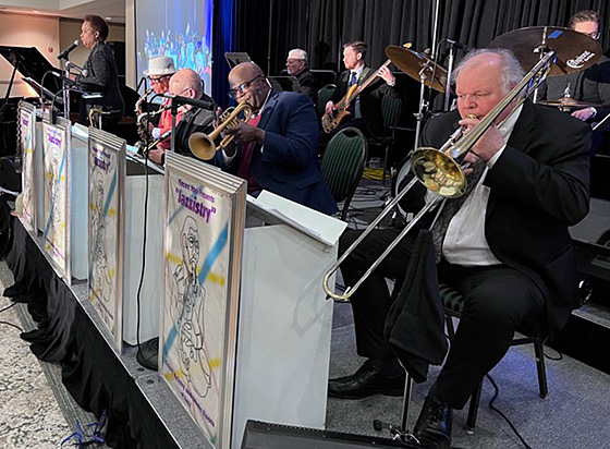 Jazzistry had its annual Mardi Gras celebration at Eastern Michigan University on February 25. Vincent York’s all-stars got everyone out of their seats to dance! The all-stars included John Douglas on trumpet and Ron Kischuk on trombone, York on alto and vocals by Joan York. The set was dedicated to Barbara Kramer, and her son Jesse was the drummer for the band. The front row of band is shown here with (from the right to left): Ron Kischuk, John Douglas, Pete Kahn, Vincent York, and Joan York.