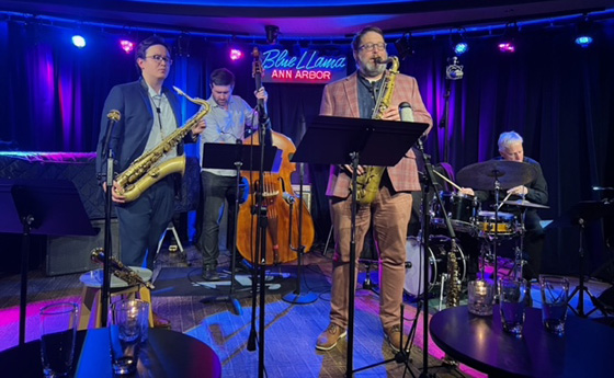 On a chilly Wednesday in October, we visited the Blue LLama in Ann Arbor to hear the second set of saxophonist Kenji Lee and drummer Pete Siers’s new project celebrating the compositions of the hard bop pioneer pianist Elmo Hope, in a quartet with Andrew Bishop on tenor and soprano saxes and Andy Peck on bass.