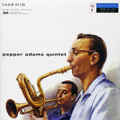 In 1957, while still in LA, Adams recorded the first album under his own name for Mode, a short-lived record label that produced 28 LPs in 1957, mostly dedicated to musicians associated with the local studio scene. Pepper Adams Quintet (Mode 112) found the baritonist in the company of Stu Williamson, trumpet; Carl Perkins, piano; Leroy Vinnegar, bass; and Mel Lewis on drums, and now it is being reissued as an audiophile LP by a new label, Gammaut, remastered by the respected Bernie Grundman.