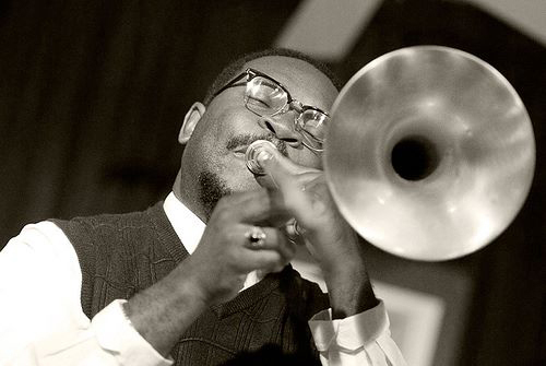 Chandler also had big plans for the summer, including a chance to teach at the Interlochen Arts Academy for three weeks, but that has been canceled. Online teaching is of course possible, but clearly a second best to live face-to-face interactions with students. Chandler is by now an experienced teacher and takes great pride in it. He would cite his teaching as his primary contribution to the jazz world, closely followed by performing and composing. He got his feet wet in the world of teaching with two jobs in South Carolina (Clafton University and S.C. State University) that lasted for three years. His students were enthusiastic but came in with widely differing levels of musical training. Chandler had to adapt his arrangements to match the skill levels in the band. He guesses that his teaching experience helped him land a job at Wayne State University where he is now on a three-year contract. “It’s an honor beyond words to teach at Wayne” he says. As a child growing up in Detroit, he took part in summer camps there and later attended briefly as an undergraduate. He later received an M.A. at the University of Michigan and also taught as an instructor at Michigan State. Chandler is a trombonist firmly rooted in the Detroit jazz tradition. His favorite player is Curtis Fuller and he has taken part in several tributes to the master. He has also had the privilege of visiting Fuller at the Rehab Center where he currently resides.