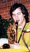 On Day Three, the String Trio of New York delighted their audience at Kerrytown Concert House. Chamber jazz like theirs works great at KCH, as did Jewels & Binoculars. The trio's set was nicely paced with tunes by Coltrane, Monk, and originals by co-leaders bassist John Lindberg and guitarist James Emery. Montreal altoist Jean Derome gave his second performance of the festival at Workbench Furniture. By the end of his set he had expanded his trio to the quintet (Les Dangereux Zhoms) he showcased at the Firefly the day before. Derome is a very interesting and arresting saxophonist, particularly on the alto and his compositions show his many talents. The highlight of the day was the set by the Ballin' the Jack septet from New York, led by saxophonist Matt Darriau. He has written many creative re-arrangements of classic pieces by Ellington and other swing era writers. What really put the icing on the cake was the inspired and exciting playing of all of the members of the band. Their blend of avant-garde and swing was so well concocted that a wholly new music emerged. Like with Ellington, the balance between solos and ensembles was ingenious, and the band swung in a turn of the twenty-first century fashion. It is unfair to single out individual performances from this tight collective, but I was struck by the nice tone of Peck Allmond's trumpet, Steve Swell's verve on the trombone, Darriau's powerful tenor, Ben Sher's articulate guitar, and the wonderful team of Joe Fitzgerald on bass and George Schuller on drums. Ballin' the Jack represented the best of the 2002 Edgefest: avant garde with edge as well as humor. |