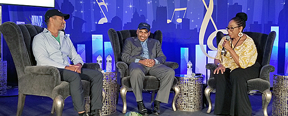 BELOW: Bassist Marion Hayden interviewed drummer Ali Jackson in the Jazz Talk Tent and since his brother and trumpeter Khalil (on left) was around she included him as well in an interesting discussion of their musical roots in Detroit. Ali is the drummer for the Lincoln Center Jazz Orchestra.