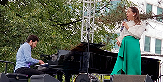 ABOVE: Veronica Swift is an upcoming singer who has her first CD on Mack Avenue. She comes from a musical family, her father was the late pianist Hod O’Brien and her mother was a vocalist, and this probably accounts for her musical maturity. She was backed on the Waterfront Stage by another brilliant young musician, pianist Emmet Cohen.