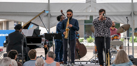 BELOW: Russ Macklem, trumpet, performing with his quintet in the Open Air Stage