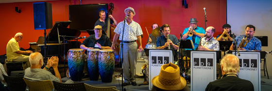 ABOVE: Tbone Paxton singing with the Planet D Nonet on the Rathskeller Stage