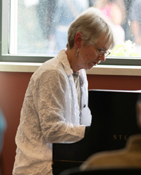BELOW RIGHT: Ellen Rowe performing in the Solo Piano Room
