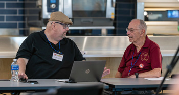 ABOVE RIGHT: RJ Spangler, left, being interviewed by George Sinnott in Jazz Talks!